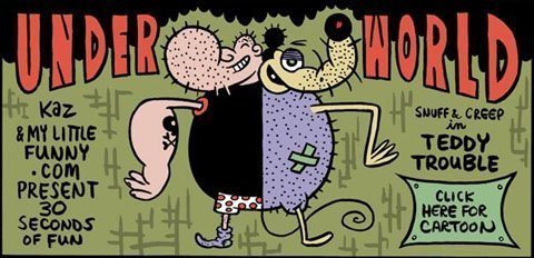 Os dejo un post sobre el delirante dibujante de cómic Kaz, neyorquinio de origen lituano, y su surreal Underworld. En España hay una recopilación hecha por un grupo mayorquín, Autsaider comics , muy recomendable. La podeis encontrar en Nostromo Murcia, C/ Madre de Dios Nº7. Que lo disfruteis.